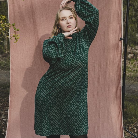 "Mekko saapui toivomassani koossa ja on juuri sopivan rennon väljä. Ihana hehkuva väri ja kuvio mekossa. Kiitokset koon vaihdosta!”