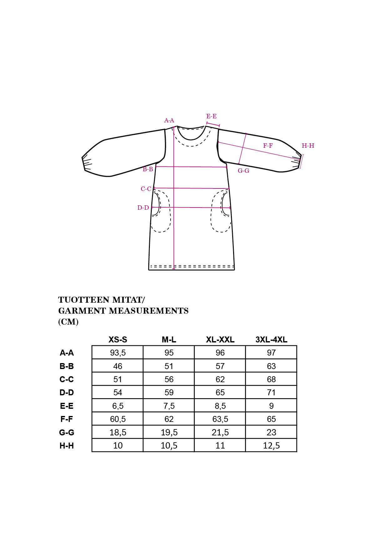 Mittataulukko – vartalon mitat