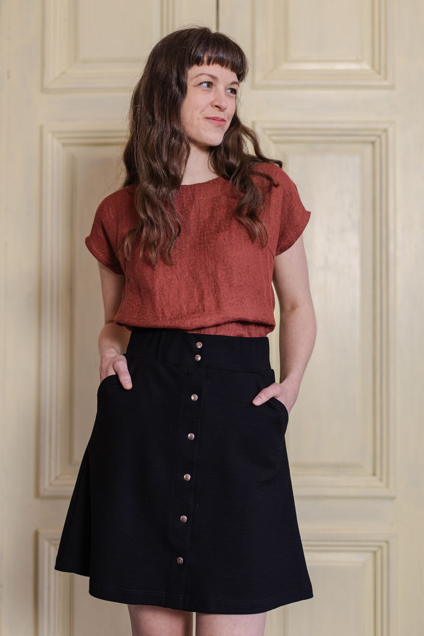 Materiaalina pehmoinen, esikutistettu pellavajacquard, jossa hienovaraisesti toistuva, yksivärinen struktuurikuvio. Kankaan sidos on melko löyhä, joten valitsethan tarpeeksi väljän koon, jotta vaate kestää pitkään käytössä.