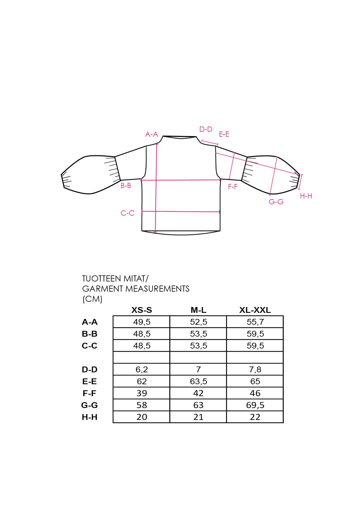 Tuote on suunniteltu, leikattu, ommeltu ja viimeistelty Suomessa, Kiteellä/Tampereella.